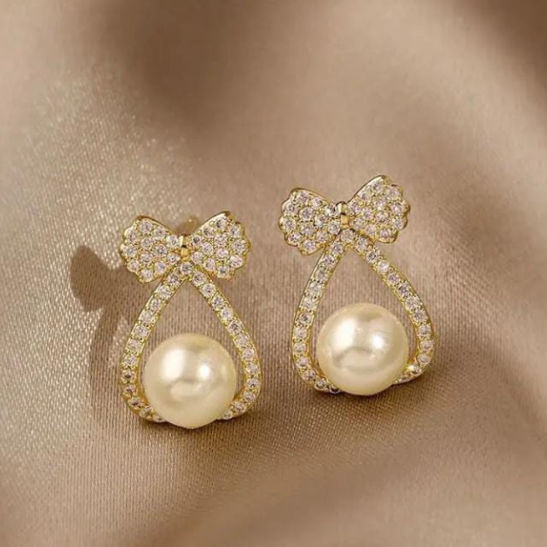 Elegant Stylish Ear Studs with White Stones and Pearl – Jewellery