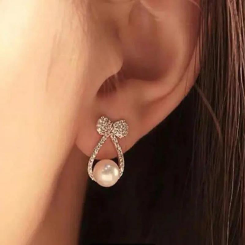 Bow Style, Stylish Look with white Pearl and White beautiful stones.