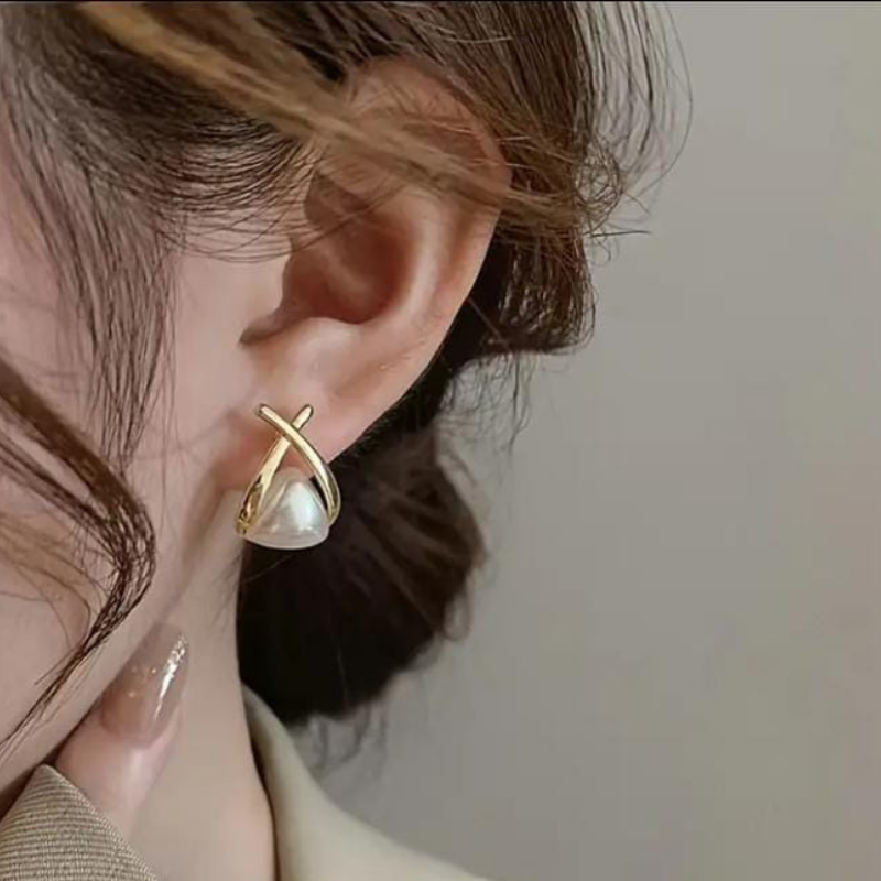 Stylish Golden and White Ear Rings -Jewellery.